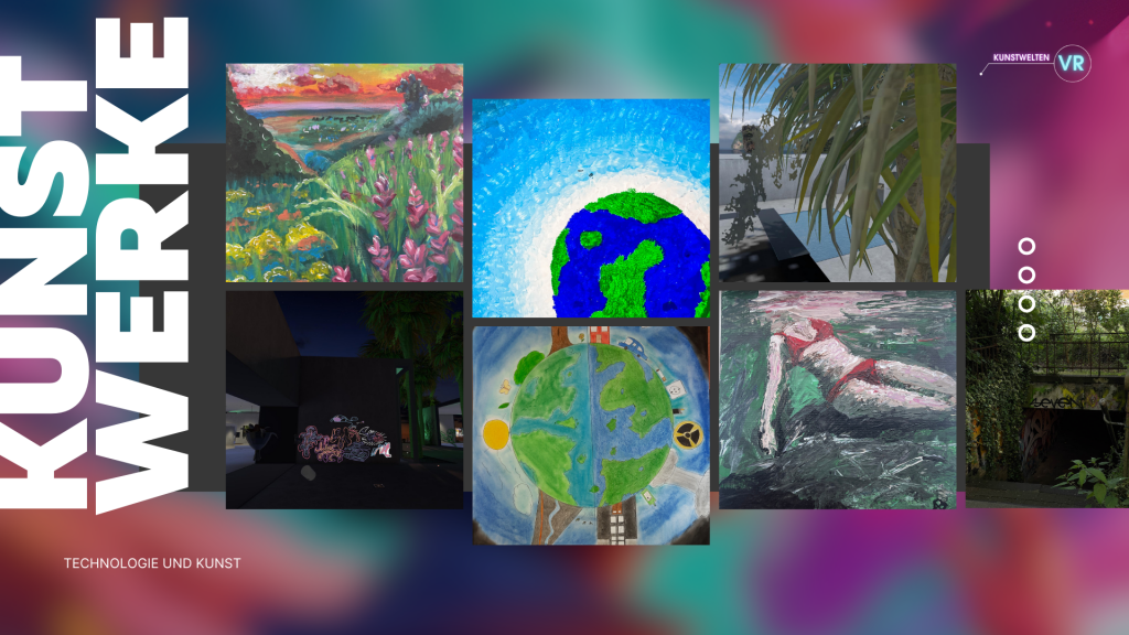 Kunstwelten VR ist ein schulisches Projekt, dass in VR erarbeitet und in VR vorgestellt wurde. Die Schülerinnen und Schüler einer 8. Klasse der Gesamtschule Dellbrücker Mauspfaf entwickelten eine Kunst-Ausstellung zum Thema Nachhaltigkeit. Dafür standen Ihnen sowohl außerschulische Besuche im Museum Ludwig zur Verfügung als auch eine Galerie, die sie für die Vernissage nutzen konnten. Die Vernissage fand am 17. Januar 2024 in RAUM statt, einer kolaborativen Umgebung in VR statt. Insgesamt besuchten 123 Menschen die Ausstellung, in der sowohl Acrylgemälde, Videos und Zeichnungen, als auch 3D Modelle und mit KI generierte Kunst ausgestellt wurden.