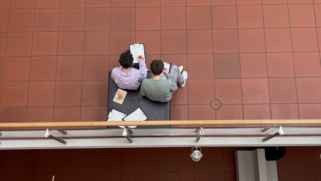 - Künstler:innen: Diese Gruppe war verantwortlich für die kreative Umsetzung des Themas „Nachhaltigkeit“ in Form von Kunstwerken, die später in der Ausstellung präsentiert wurden. Dafür besuchten die Künstler:innen Ausstellungen und beschäftigten sich mit unterschiedlichen künstlerischen Zugängen zu Themen. Es entstanden Gemälde, Zeichnungen, Skulpturen, Videos sowie 3D-Modellen und KI-generierten Bildern.